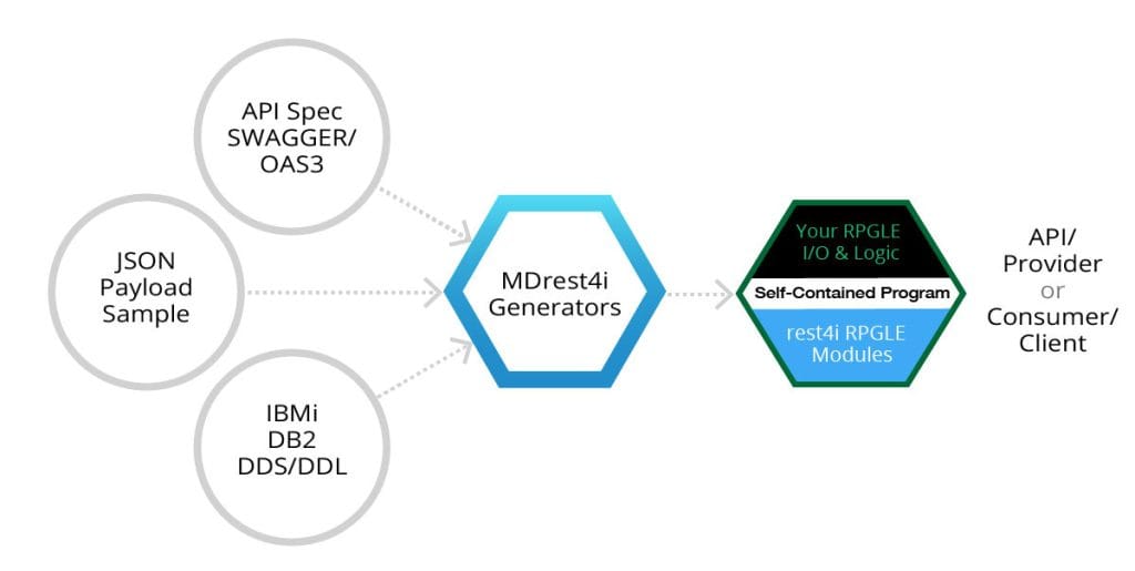 Generación automática de APIs repetitivas y programas de consumo en RPGLE y SQL a partir de cualquier requisito de integración.