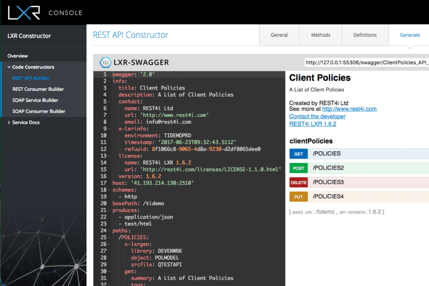 - Genere APIs REST y programas de consumo desde las definiciones más comúnmente utilizadas.